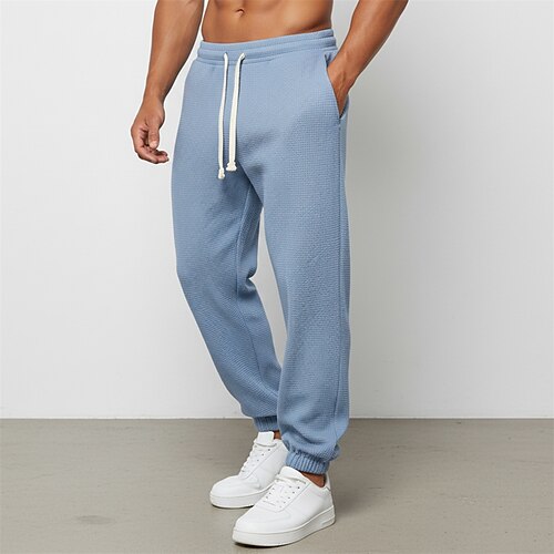 Per uomo Nido d'ape Pantaloni da tuta Joggers Pantaloni Pantaloni casual Coulisse Polsino elastico Tinta unica Comodità Lunghezza intera Quotidiano All'aperto Abbigliamento casual alla moda Vacanza