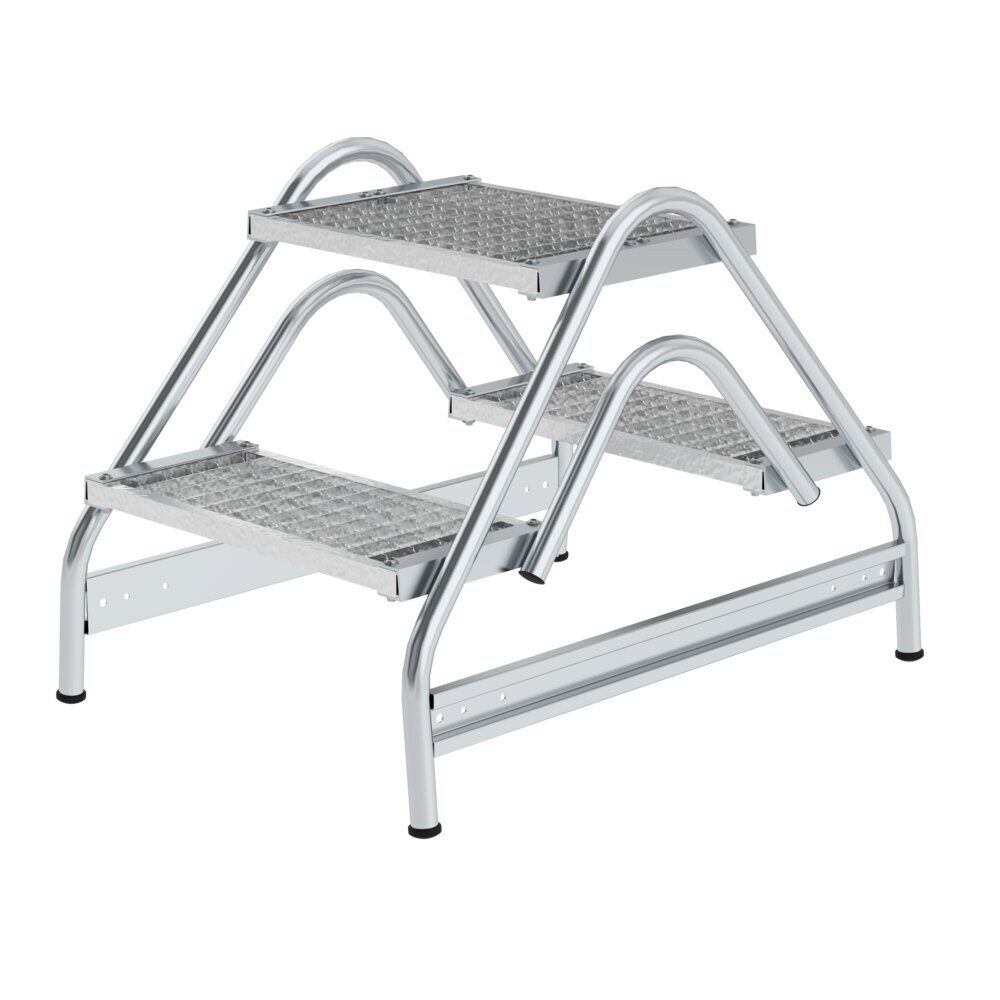 PROREGAL Arbeitspodest beidseitig begehbar | 2x2 Stufen | Stahl-Gitterrost | Rutschfeste Kunststoffschuhe