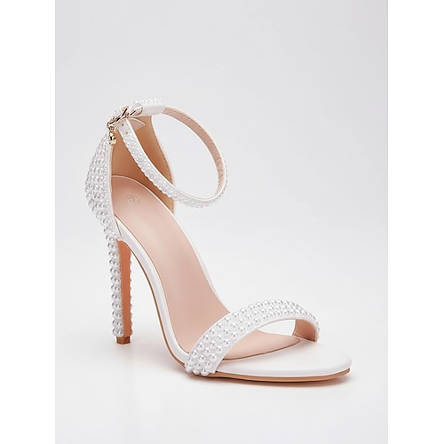 Per donna Scarpe da Sposa Tacchi con Cinturini Scarpe da Sposa Perla Stiletto Punta aperta Classico Finta Pelle Bianco Beige