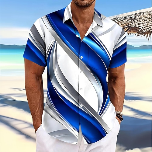 Per uomo Geometrico Onde Arte astratta Camicia Camicia Estiva Camicia con Bottoni Manica Corta Moda Casual All'aperto Vacanza Abbigliamento Quotidiano Estate Primavera Collo ripiegato Stampa 3D
