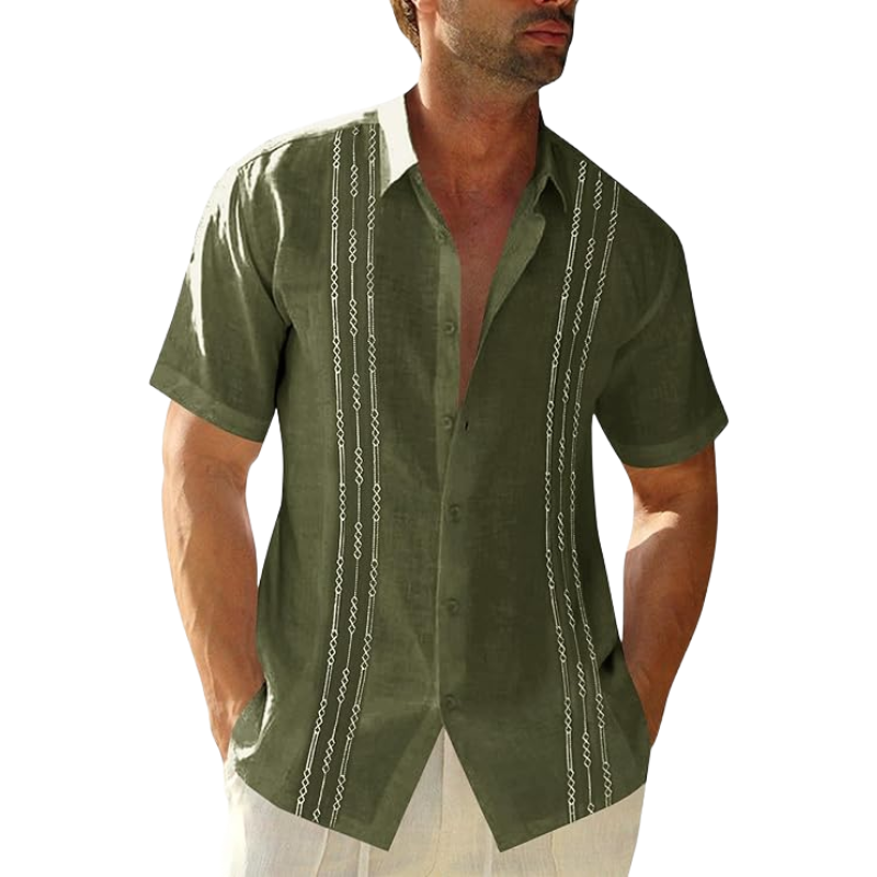 Men's Short Sleeve Guayabera Shirts Linen Cotton Button Down Mexican Embroidered Cuban Wedding Shirt Summer Beach Tops (militarygreen, 3XL)