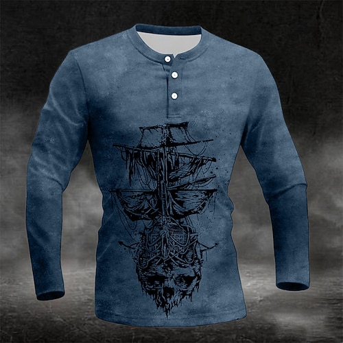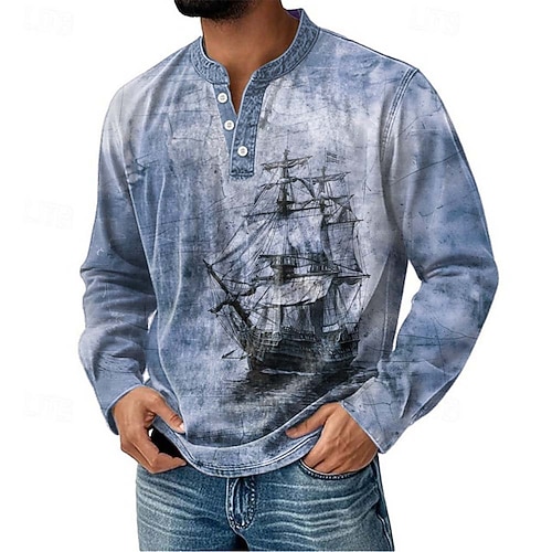 Per uomo Grafico Vintage Barca a vela Maglia Henley Manica Lunga Moda Carino Quotidiano Casuale Ferie Uscire Primavera Autunno Grigio scuro Blu Verde Borgogna Viola Henley Maglietta Henley
