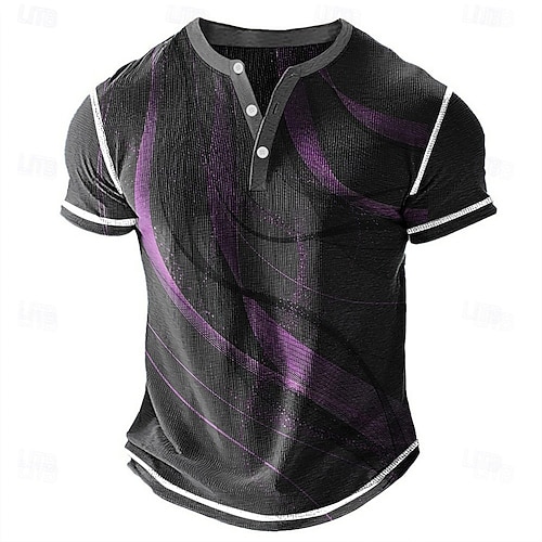 Per uomo Geometrico Astratto Maglia Henley Maglietta a nido d'ape Manica Corta Quotidiano Retrò Vintage Classico Sport all'Aperto Casuale Ferie Primavera Estate Tutte le stagioni Giallo Blu Viola