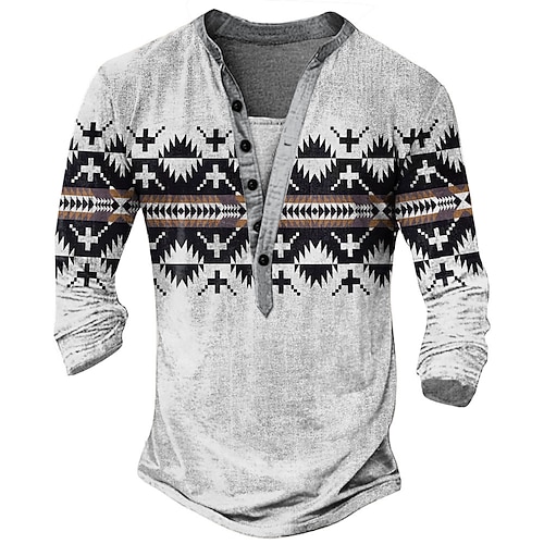Per uomo Stampa Etnico Maglietta Maglia Henley Manica Lunga Designer Retrò Vintage Casual Streetwear Casuale Quotidiano Estate Primavera Autunno Verde Grigio chiaro Blu Marrone Henley Maglietta Henley