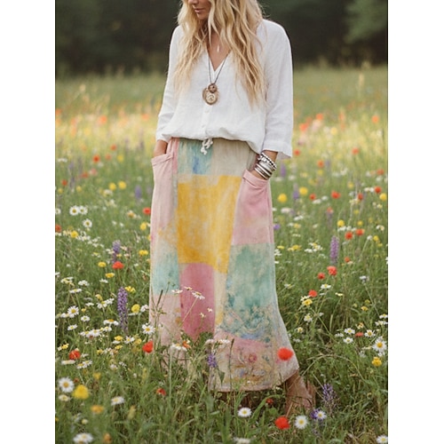 gonna da vacanza da donna bohémien vintage moda casual maxi gonne a vita media stampa floreale anelastica microelastica quotidiana strada gialla estate