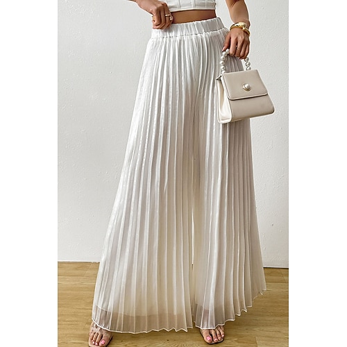 Per donna Gamba larga Chinos Vacanza Moda Streetwear Lunghezza intera Vita media Tinta unica Patchwork Tasca Fascia Elastica Comodo Traspirante Inelastico Quotidiano All'aperto Vacanza Nero Bianco