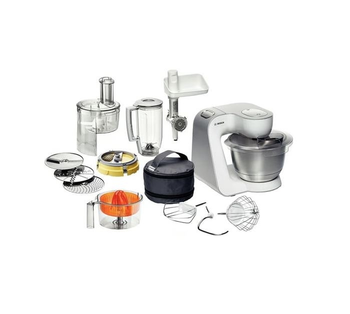 BOSCH Küchenmaschine "Serie 4 MUM5XW40, integr. Waage, Durchlaufschnitzler, weiß/champagner", weiß (weiß, beige), B:28cm H:28,2cm T:27,1cm, Küchenmaschinen, 4 Scheiben, Mixer, Fleischwolf, Zitruspresse, Profi Patisserie-Set, Küchenmaschine