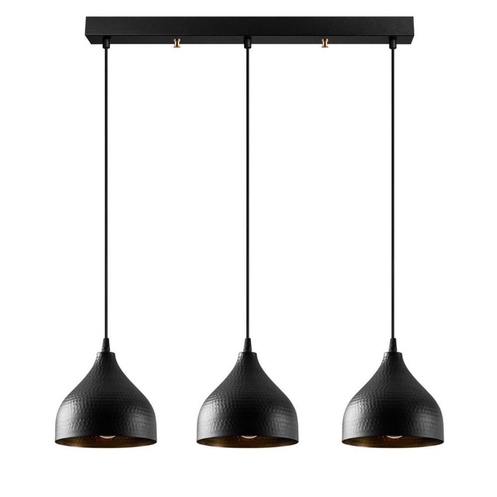 Lampada a sospensione in metallo nero a 3 lampadine