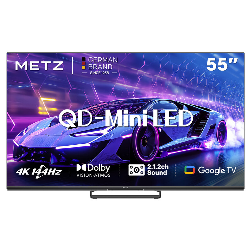 METZ 55MNE8000Z TV MiniLED 144 Hz 55 pouces (140 cm), QLED+ UHD, HDR10+, Smart TV Google, Dolby Vision Atmos, HDMI 2.1, MEMC, Upscaling 4K AI, protection des yeux (faible lumière bleue, sans scintillement)