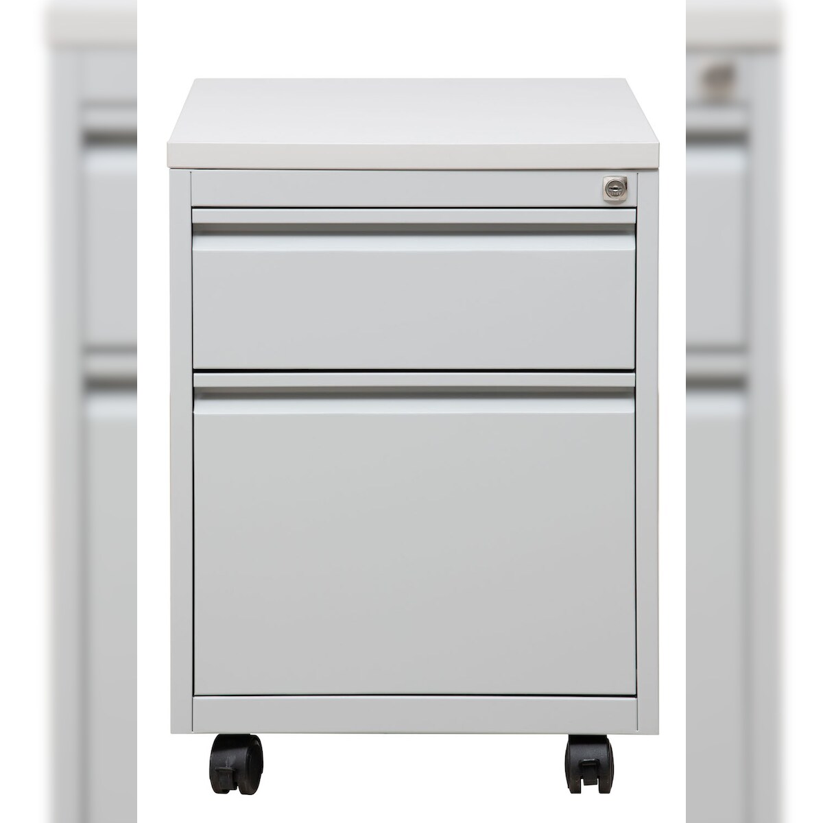 PROREGAL Rollcontainer Fox | 1 Schublade & 1 Hängeschub | Schwanenhalsgriff | HxBxT 62x46x79 cm | Holzabdeckplatte | Grau