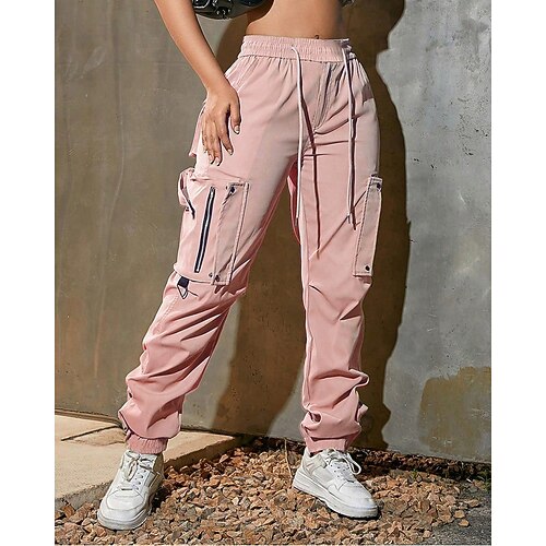 Per donna Pantaloni Cargo Pantaloni Dritto Moda Streetwear Lunghezza alla caviglia Naturale Tinta unita Tasca Confortevole Micro-elastico Sport Outdoor Abbigliamento quotidiano Nero Rosa Verde