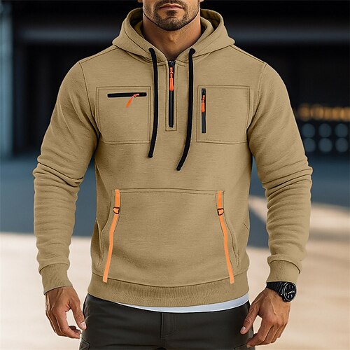 Per uomo Felpa con cappuccio Di pile Felpa con cappuccio e cerniera a un quarto Compatto Nero Verde militare Rosso Grigio Con cappuccio Liscio Tasche Sportivo Giornaliero Per eventi Fantastico