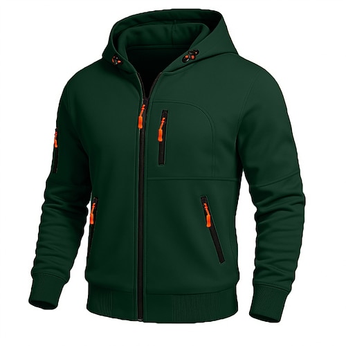 Per uomo Felpa con cappuccio Felpa con cappuccio a zip intera Felpa con cappuccio in pile Felpa con cappuccio tattica Nero Bianco Verde militare Rosso Borgogna Colletto Mao Semplice Cerniera Sport