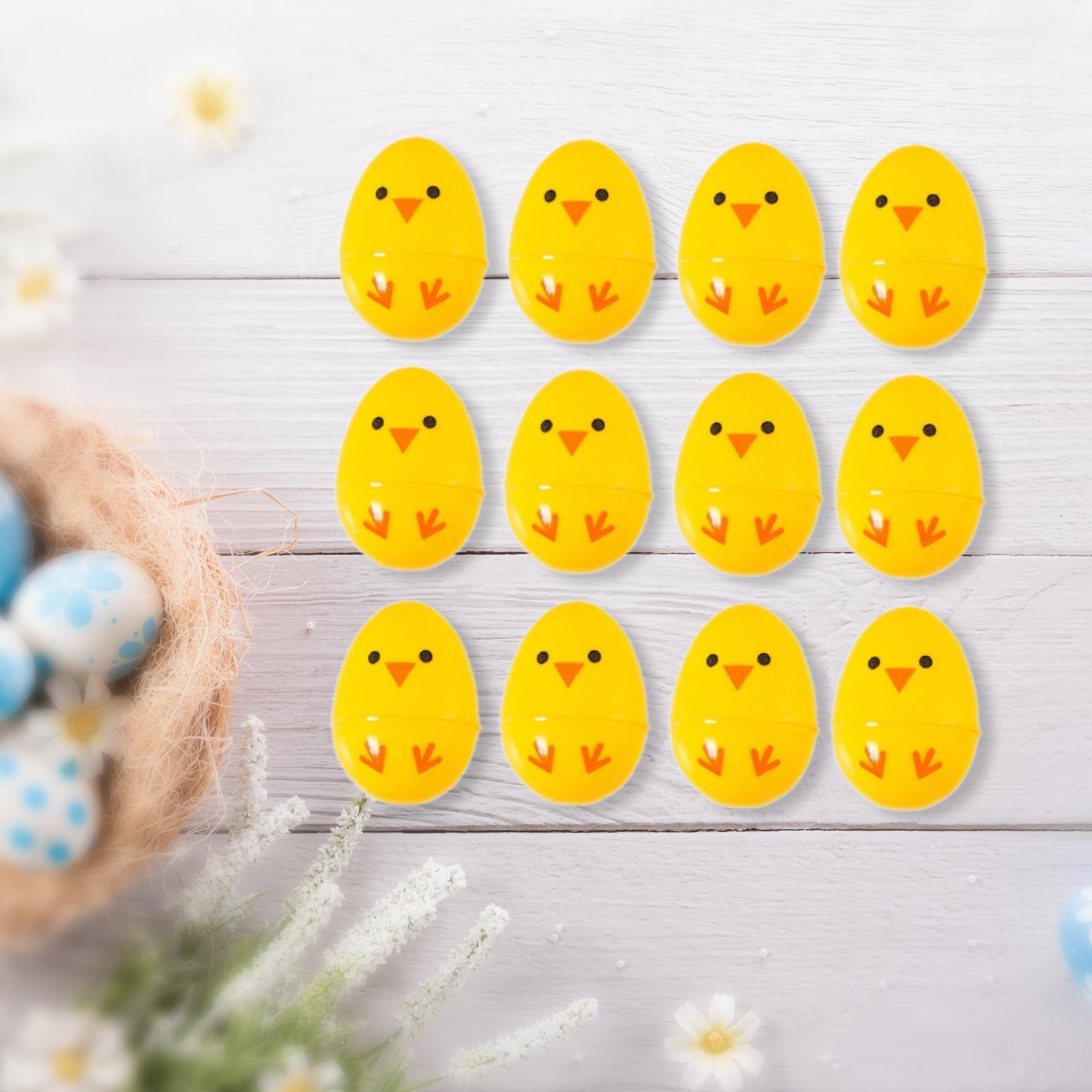 12 stuks Vulbare Paaseieren, Paasmanden Grappige Creatieve Doe-het-zelf Decoraties voor geel