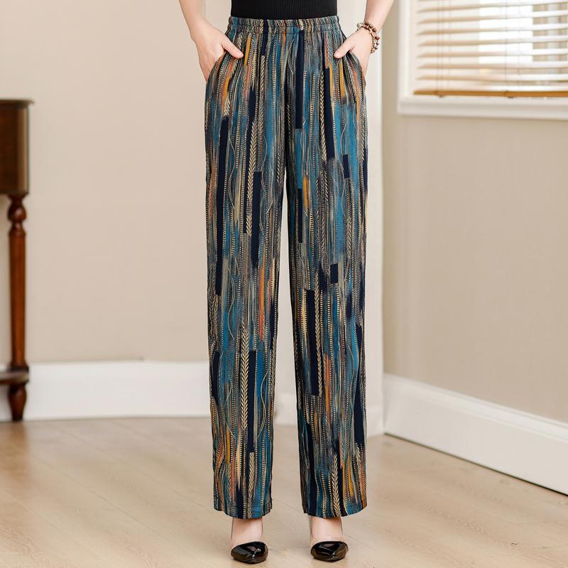 Summer Elegant High Waist Pants for Women Plus Size Vintage Print Elastic Waist Straight Pants Summer Clothes cm