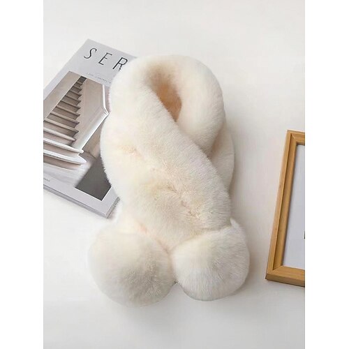 sciarpa natalizia da donna in pelliccia sintetica di coniglio con pompon, accessorio invernale morbido e accogliente per feste e regali