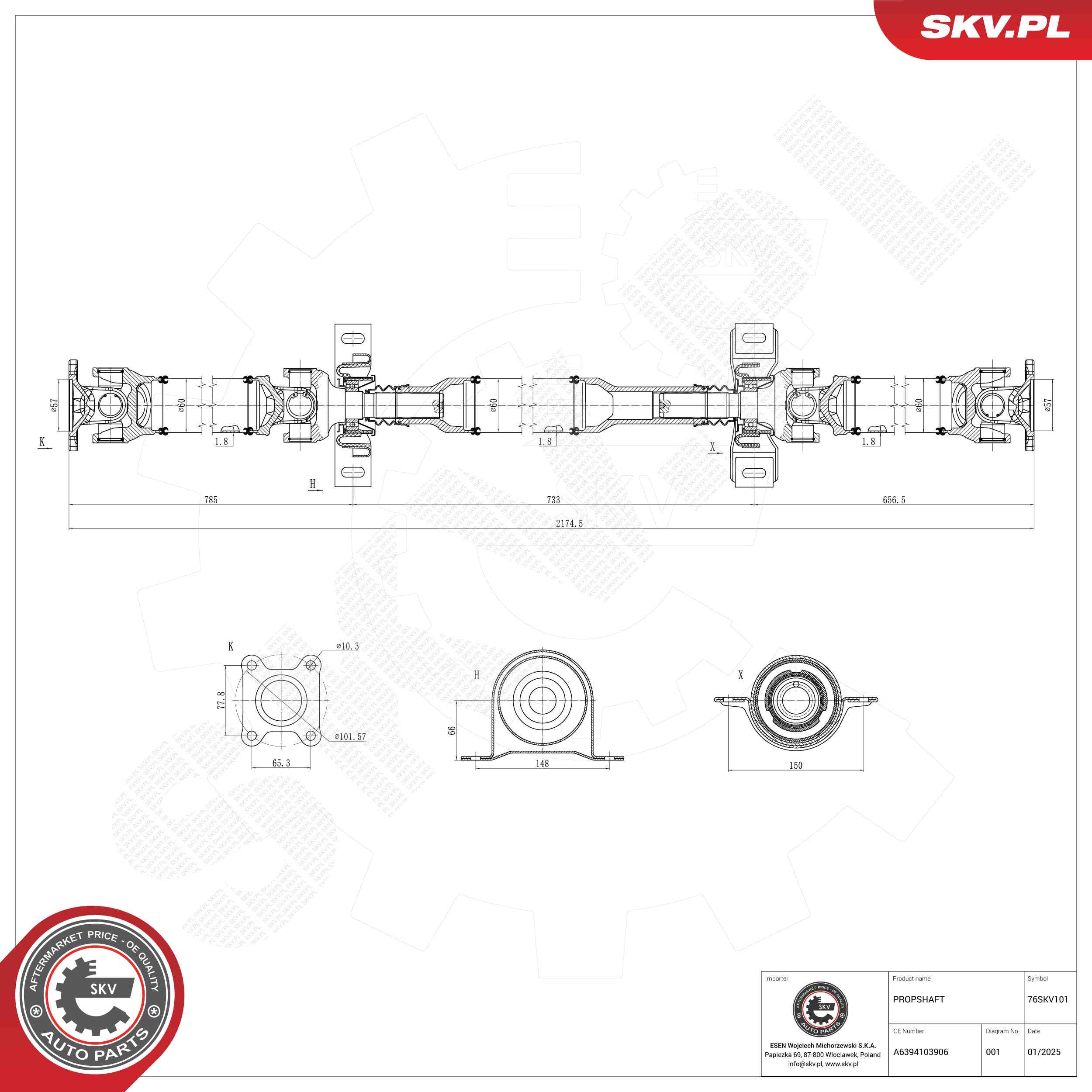 ESEN SKV Antriebswelle 76SKV101 hinten rechts links 60mm für MERCEDES-BENZ 6394103906 A6394103906