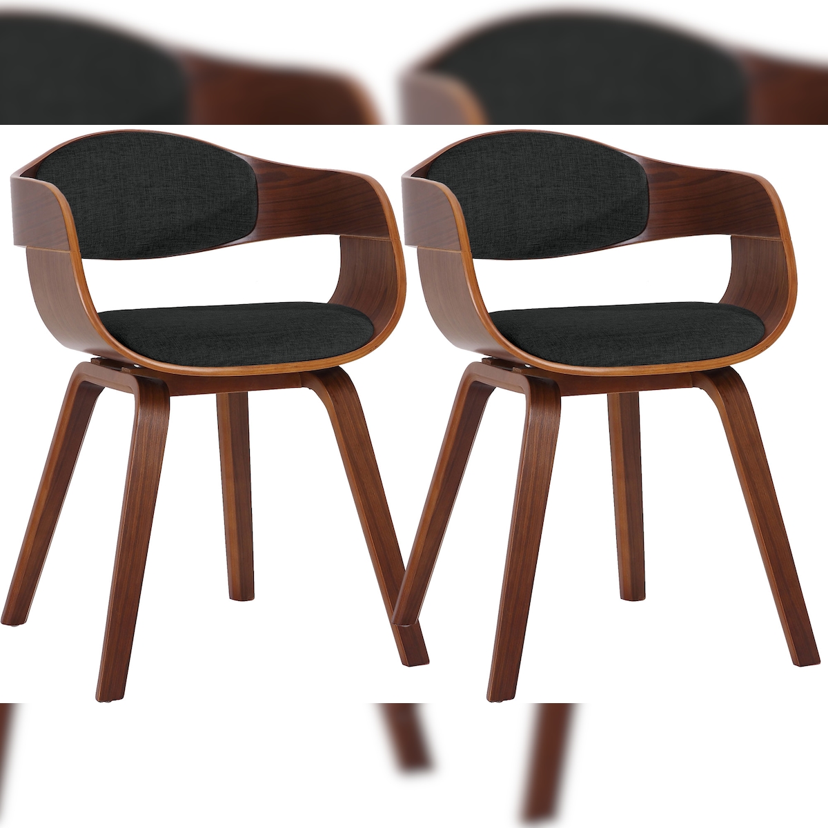 DELUKE® 2er Set Stühle LONDON Stoff - 73x49x46cm, Walnuss/Schwarz | Stoff | Holz Gestell | Konferenzstuhl Wartezimmerstuhl