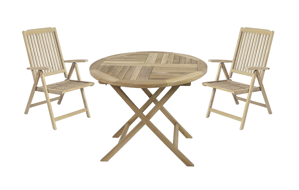 3-teilige Tischgruppe Gartengruppe Klapptisch Sitzgruppe Klappstuhl Garten Teak