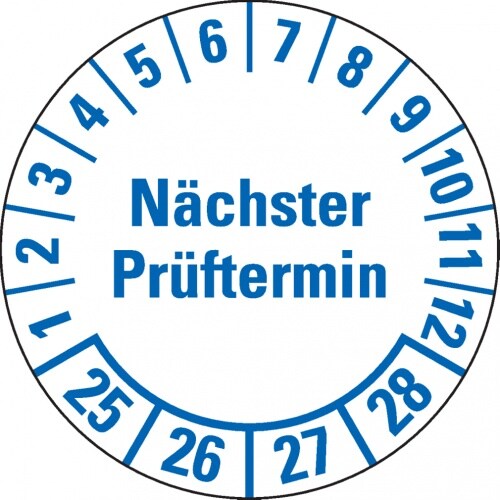 Dreifke® Prüfplakette Nächster Prüftermin 25-28, weiß, Folie, Spezialkleber, Ø 25mm, 500 Stk.