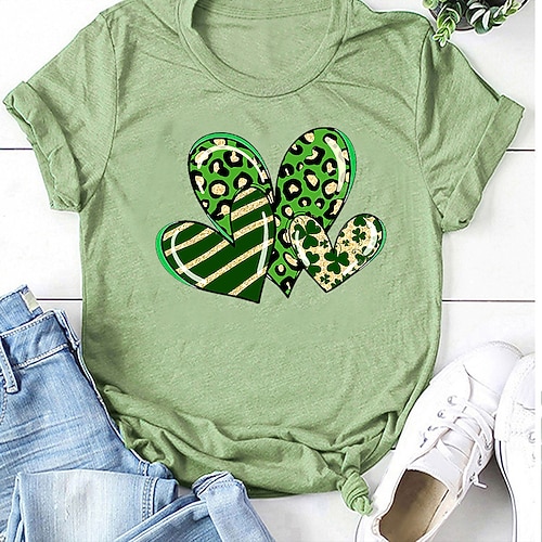 Maglietta da donna di San Patrizio T shirt Tee Verde Verde Chiaro Vino Foglia Leopardo Stampa Maniche Corte Casual San Valentino Base Collo Rotondo Vestibilità Normale Fortunata Dipinto di San