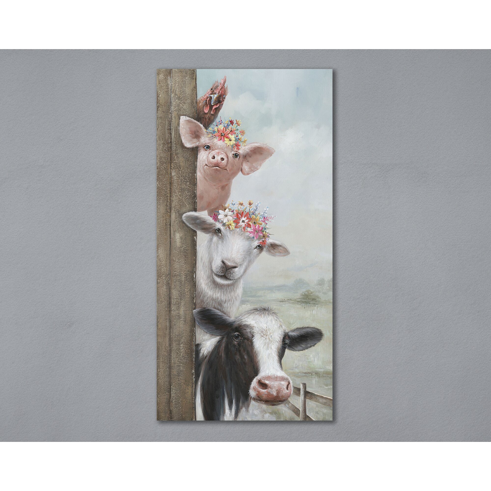 La Casa »Tiere schauen um die Ecke« Ölbild handbemalt 70x140 cm