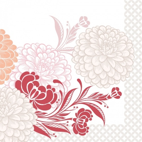 Mank Serviette Serviette Clarissa in Bordeaux 40 x 40 cm, 50 Stück - Dahlien Blüten Blumen stoffähnlich