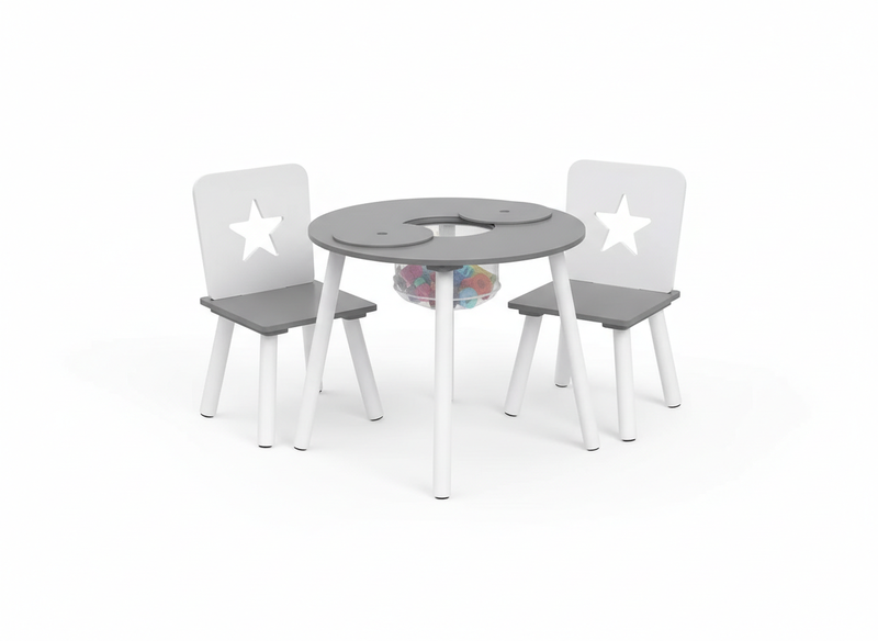 WOLTU 3-teiliges Kindermöbel-Set: Runder Tisch & 2 Stühle, Weiß/Grau, für Vorschulkinder
