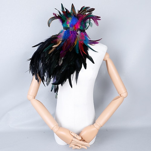 Accessori Samba Carnevale 2026 Rio Carnevale Mantello Stola Piume Bianche Donna con Collo Alto Costume per Festival in Brasile