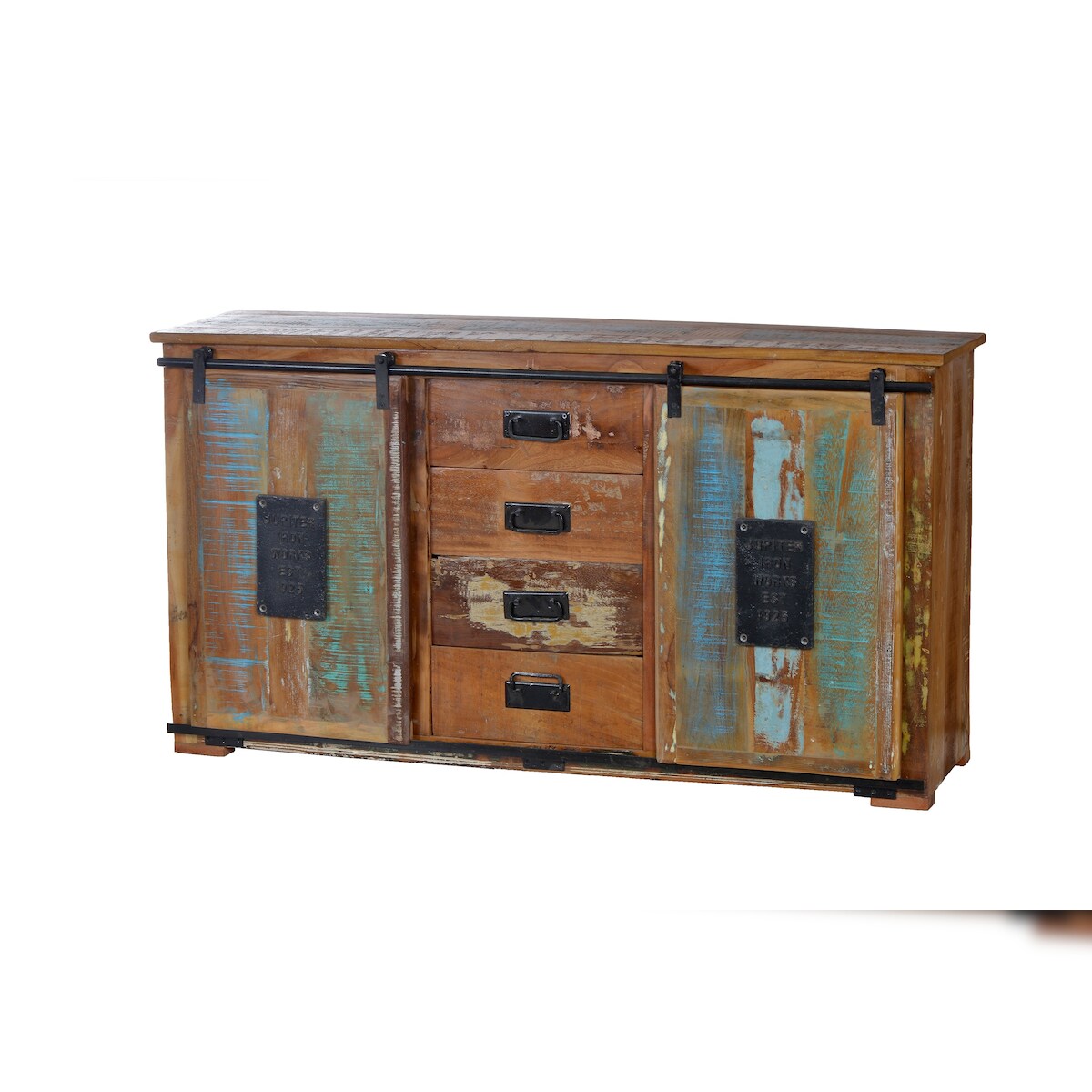 SIT Möbel Sideboard Altholz | L 150 x B 38 x H 81 cm | natur / bunt | 11303-98 | Serie JUPITER