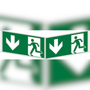 Rettungszeichen, Notausgang aufwärts rechts - ASR A1.3 (DIN EN ISO 7010) - 300x150 mm Folie selbstklebend