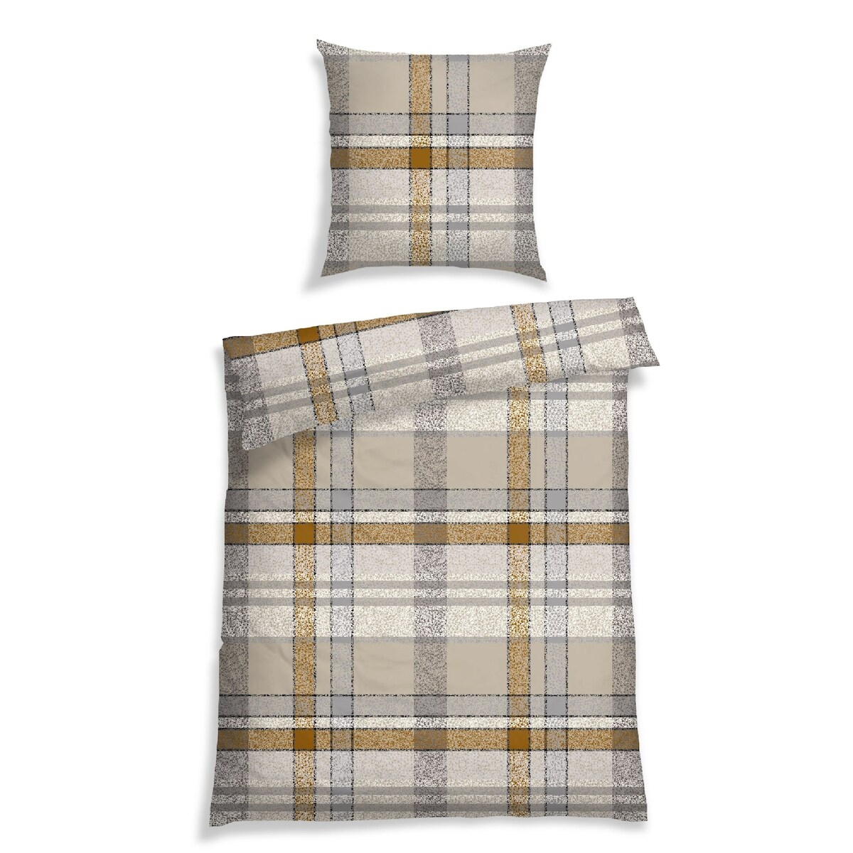 Schiesser Bettwäscheset Arno - Feinbiber - 2-teilig - 155 x 220 cm - Natur-Grau