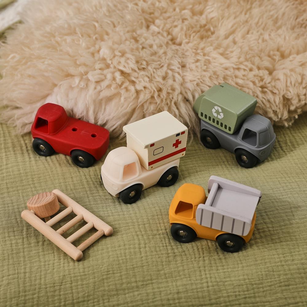 Baby BPA Free Silicone Montessori Toys Food Grade Cartoon Engineering Car Soothing Teether Toys For Newborn Teething Nursing Toy