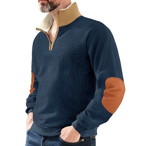 Per uomo Maglia Felpa in pile Felpa con zip corta Felpa con cappuccio foderata in pile Nero Blu marino Cachi Grigio chiaro Grigio scuro Con Cappuccio Semplice Patchwork Sport Outdoor Casuale