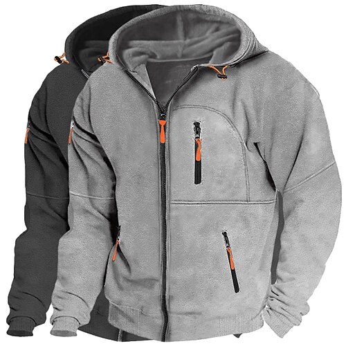 Per uomo Felpa con cappuccio Felpa con cappuccio a zip intera Giacca in Pile Felpa con cappuccio foderata in pile Nero Bianco Verde militare Blu marino Blu Reale Con Cappuccio Semplice Sport