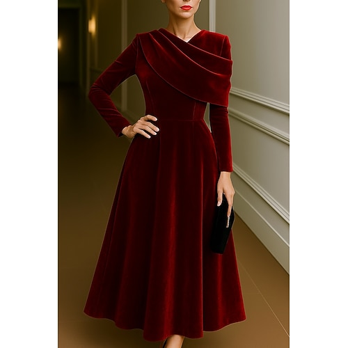 Linea ad A Lunghezza al pavimento Abito Camicia Vestito da Festa Abito da Cocktail Abito da cerimonia per signora Manica Lunga Colletto a Camicia Elegante Vintage Matrimonio Formale Nylon con