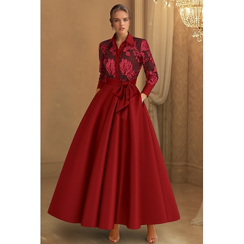 Per donna Abito da smoking Linea ad A Feste Matrimonio Formale Raso Glitter Elegante Monocolore Manica 3/4 Lunghezza al pavimento Revers dentellati