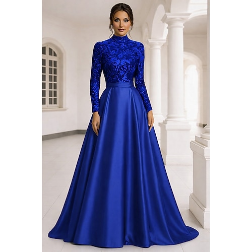 Linea ad A Lunghezza al pavimento Perline ricamate Abito Formale Abito da madre della sposa Abito da Sera Da principessa Abito formale Elegante Vintage Scintillante Manica Lunga Collo Alto Matrimonio