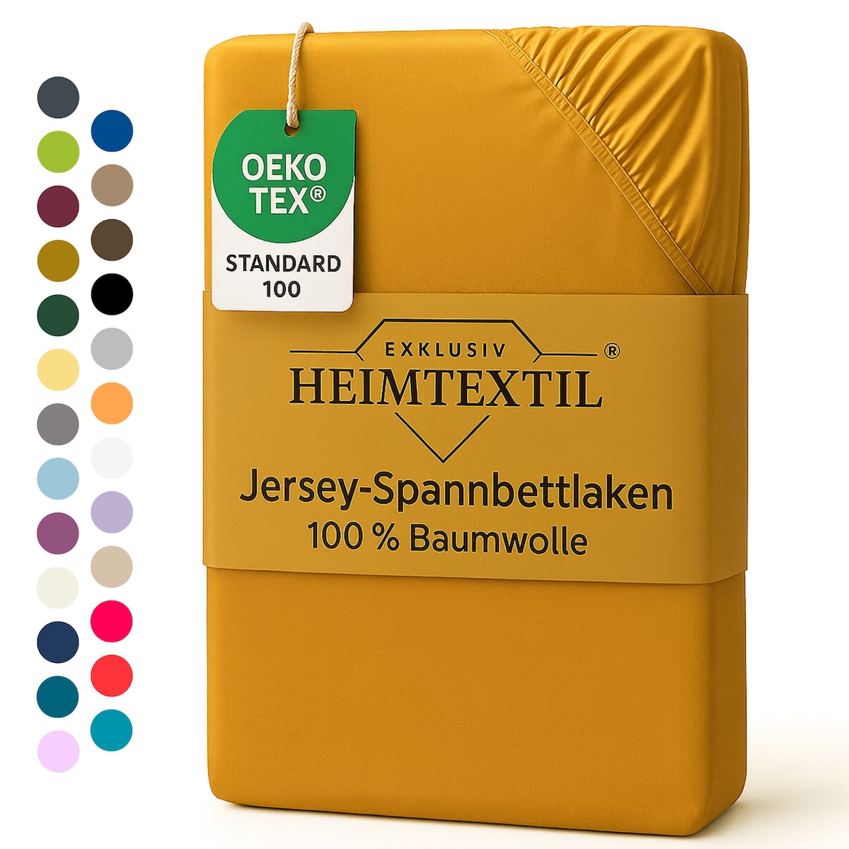 EXKLUSIV HEIMTEXTIL Marke Jersey Spannbettlaken 180 x 200 cm Curry 100% Baumwolle Öko - Tex Zertifiziert Bed-Sheet Bettlaken Spannbetttuch Topper