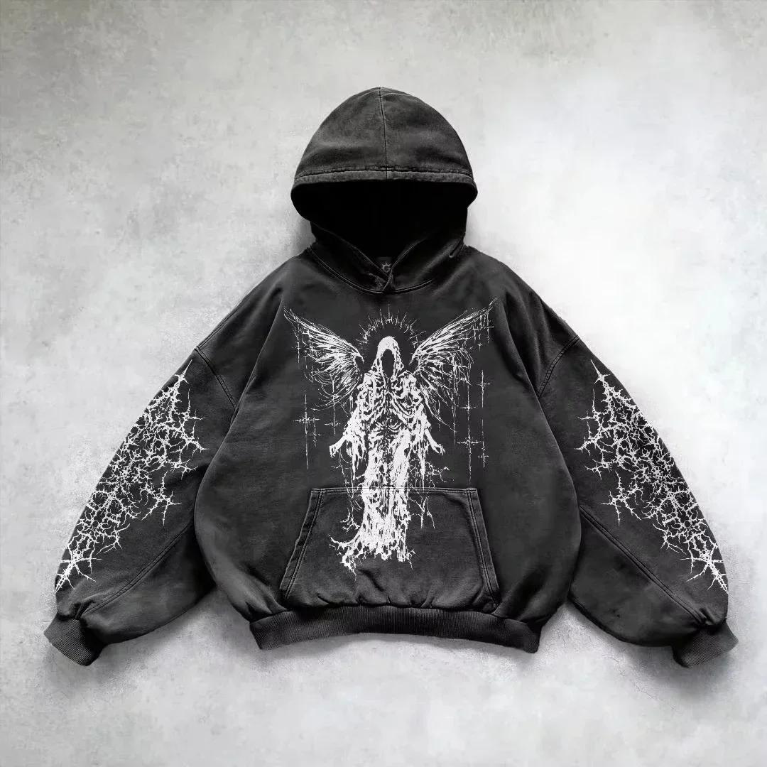 ERD Melancholie Reich Hoodie: Europäisch-Amerikanischer Streetwear, Lockere Passform, Reißverschluss, Kurzarm cm
