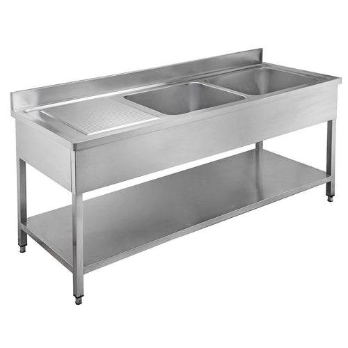 VM Europa Edelstahl Spültisch 2 Becken rechts, mit Grundboden, mit Aufkantung, Eco - zur selbstmontage: 180 x 70 cm / mit Aufkantung / selbstmontage