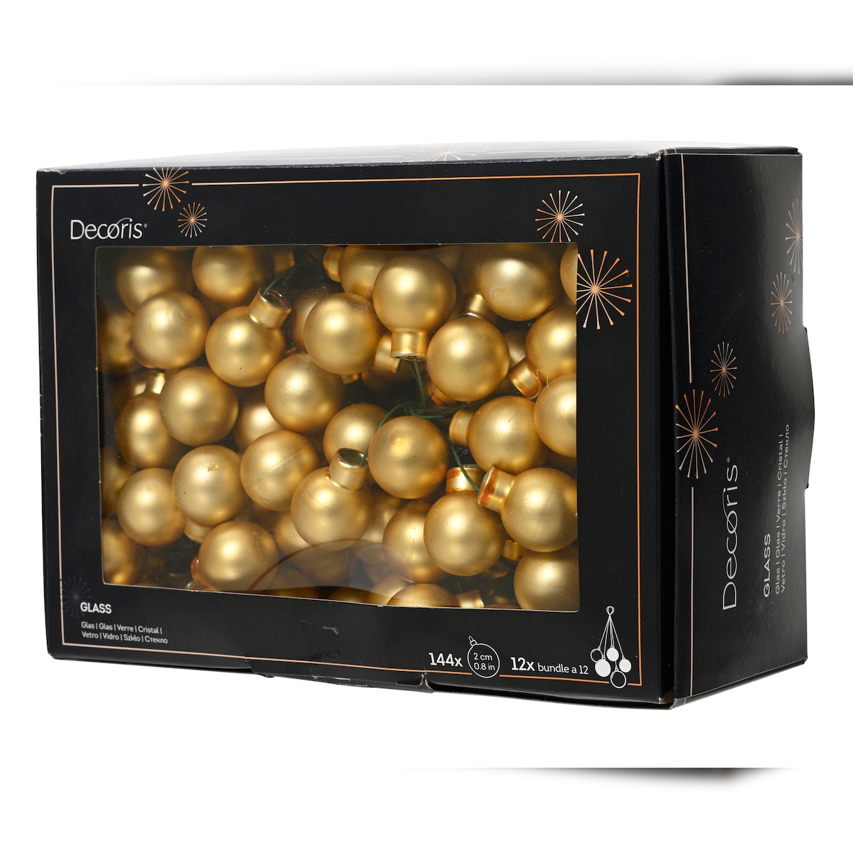 144 Glaskugeln am Draht 2cm Weihnachtskugeln Spiegelbeeren zum Basteln gold