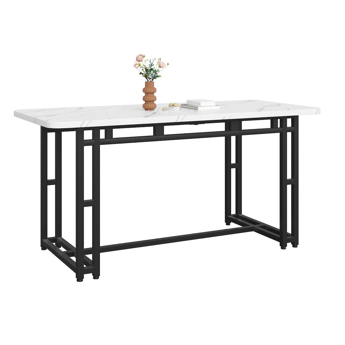 OKWISH Ausziehbarer Esstisch 159x74x77 cm Weiß+Schwarz mit Marmoroptik Tischplatte, MDF und Metall, Schiebesystem, höhenverstellbare Beine