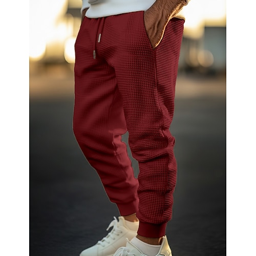 Per uomo Nido d'ape Pantaloni da tuta Joggers Pantaloni Pantaloni casual Coulisse Polsino elastico Tinta unica Comodità Lunghezza intera All'aperto Quotidiano Abbigliamento casual alla moda Vacanza