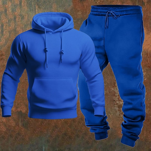 Per uomo Set coordinati Blu Felpa con Cappuccio Pantaloni da tuta Joggers Pantaloni Set Manica Lunga Con Cappuccio All'aperto Vacanza Semplice Tasca 2 Pezzi Poliestere Primavera