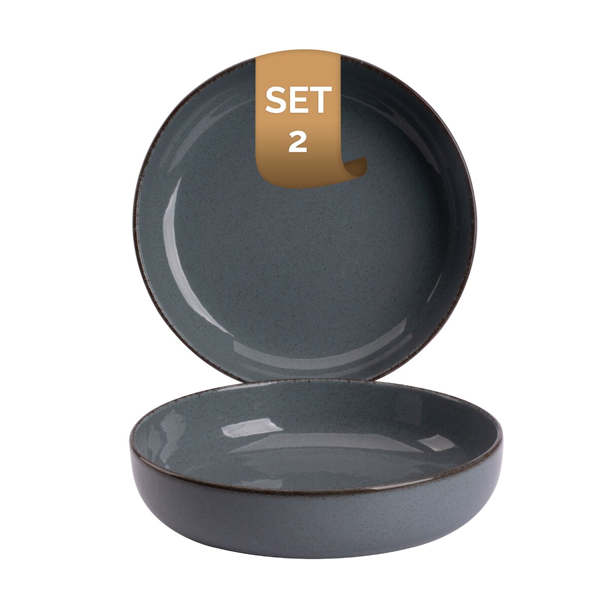 2x Palmer Antigo Teller tief, Ø 19 cm, leichtes Porzellan, für ein 2 Personen Gedeck, spülmaschinenfest, blau grau braun, leicht gesprenkelt