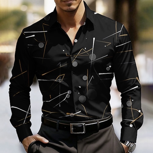 Per uomo Motivo Geometrico Linea Arte astratta Camicia Camicia con Bottoni Manica Lunga Moda Casual All'aperto Abbigliamento Quotidiano Primavera Autunno Collo ripiegato Stampa 3D camicie con colletto