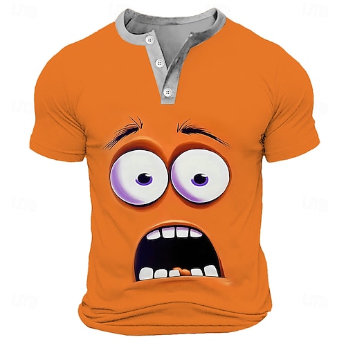 Per uomo Cartoni animati Volto umano Maglietta Maglia Henley Manica Corta Designer Retrò Vintage Casual Streetwear Casuale Quotidiano Estate Primavera Giallo Verde Rosso Blu Viola Henley Maglietta