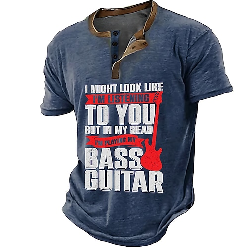 Per uomo Festival musicale Divertente Maglietta Maglia Henley Manica Corta Designer Retrò Vintage Di tendenza Casuale Quotidiano Streetwear Estate Primavera Nero Verde Blu marino Henley Maglietta