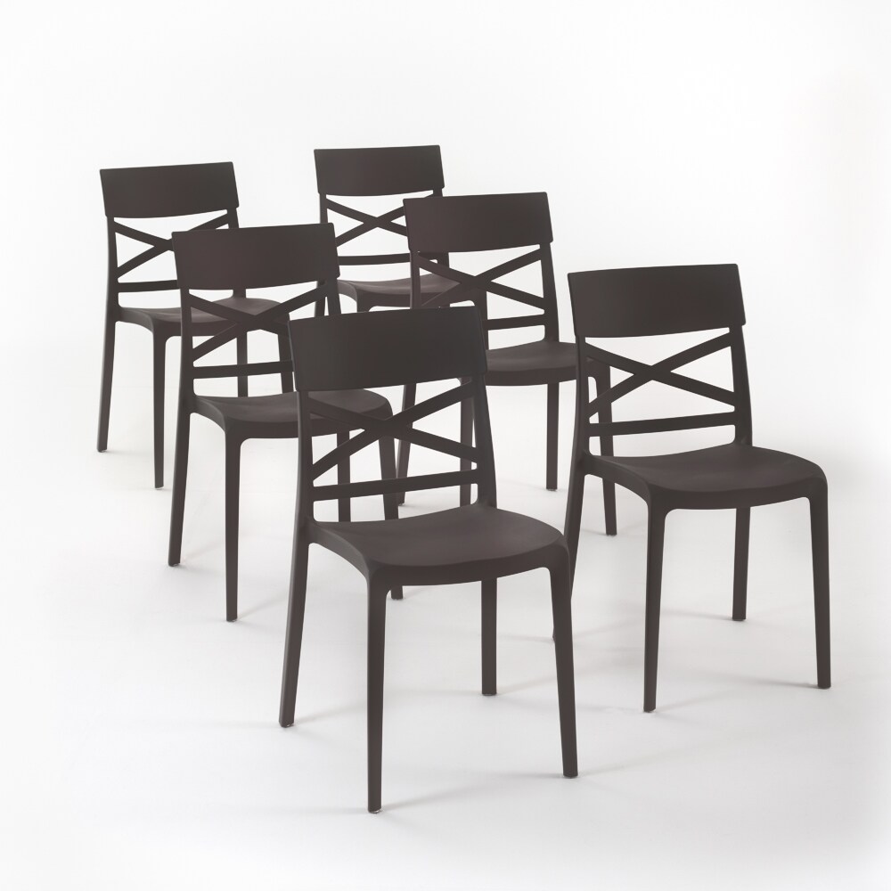 RATTATAN 6er-Set stapelbare Stühle aus Polypropylen mit Glasfasern für Außenbereich und Garten, Bar und Restaurant, Küche modernes Design - MARTINA - Mokka